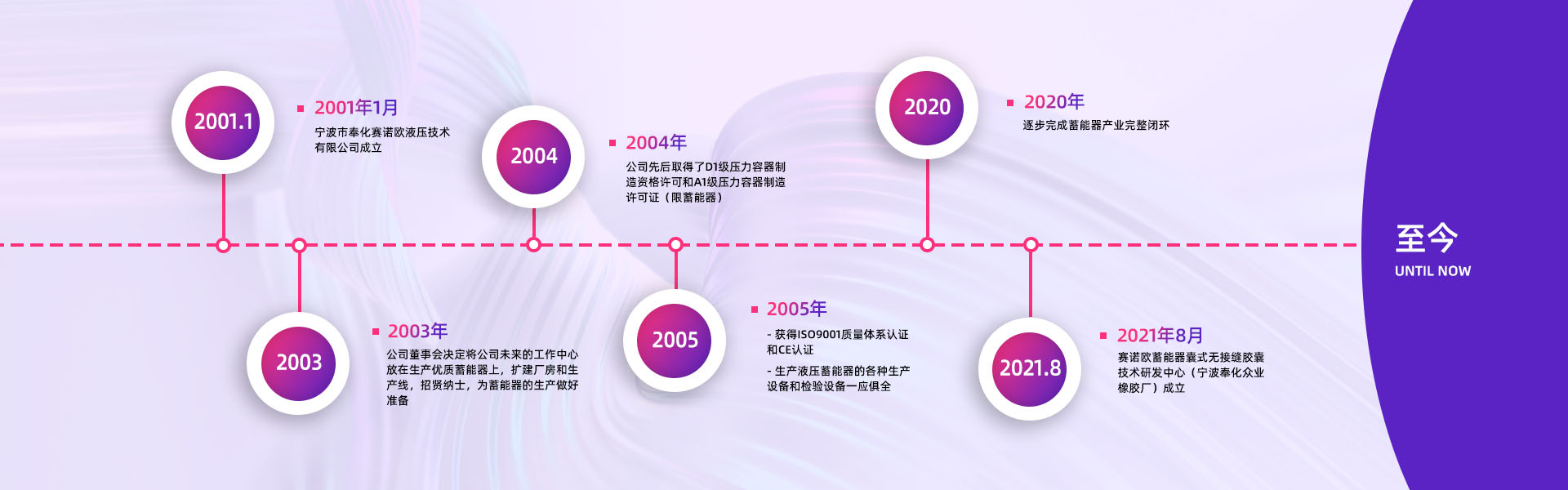 寧波市奉化賽諾歐液壓技術有限公司創(chuàng)建于2001年7月,是國內優(yōu)秀的液壓蓄能器專業制造公司,制造設備齊全,檢測手段完善。同時也是探索蓄能器囊式結構一體化的科研創(chuàng)新型企業。      2001年,公司董事會決定將公司未來的工作重心放在生產優(yōu)質蓄能器上。公司一方面著手于廠房擴建和生···